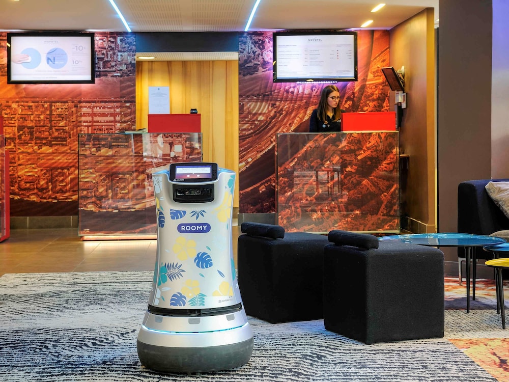 First Class Hotel. (general) The Novotel Lyon Confluence hotel is situated in the heart of the trendy district between the Rhone and the Saone. La Confluence is a unique location for shopping and leisure. This 4-star hotel is close to the city center, Perrache TGV train station and 110 yards (100 m) from the tram. It offers 150 modern rooms, a restaurant, bar lounge with terrace overlooking the Saone, free WIFI, innovative meeting rooms and private car park. An ideal address for business trips, or stays with a partner or family.