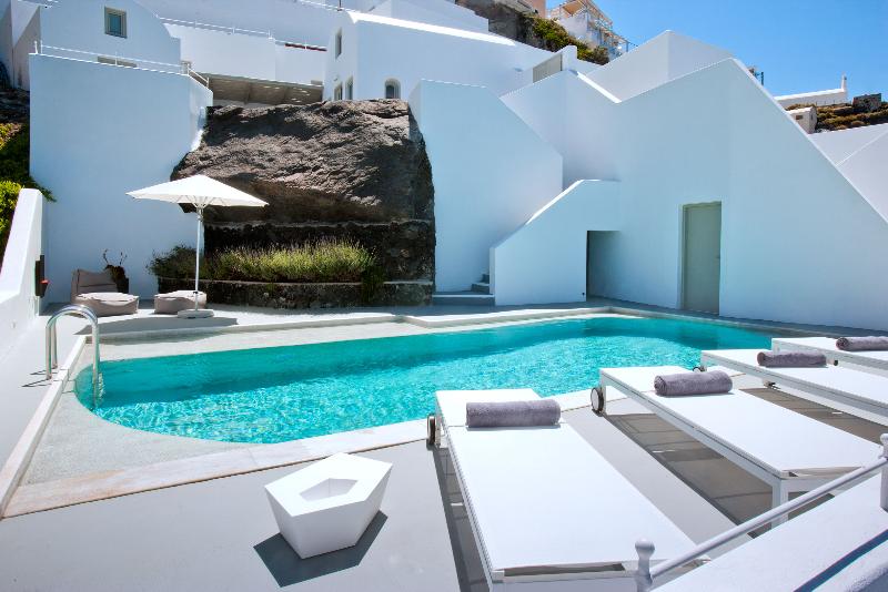 Located 2 km from Fira the award-winning Grace Santorini is an exclusive boutique hotel offering luxurious accommodation with panoramic sea views and free WiFi. It features an infinity pool and a spa treatment room.The modernly decorated rooms and suites feature design items and include a satellite TV DVD player and a balcony. Some units also have a separate seating room and a plunge pool overlooking the sea.Grace guests can benefit from a variety of services that they can request prior to arrival such as bathroom amenities Apivita cosmetics in-room fitness kit or seven-choice pillow menu. They can also choose among a wide variety of in-room drinks or special romance packages.The sea-view restaurant serves Mediterranean fusion cuisine in its elegant interior or at the terrace. A champagne breakfast is served daily while guests can also enjoy cocktails refreshments and light meals at the hotel's pool bar.Grace Santorini can arrange boat trips to nearby islands and private daily cruises. A complimentary use of laptop and iPod is possible at the reception.Situated in Imerovigli village the hotel is 8 km away from Monolithos Airport and 10 km away from Athinios Port.