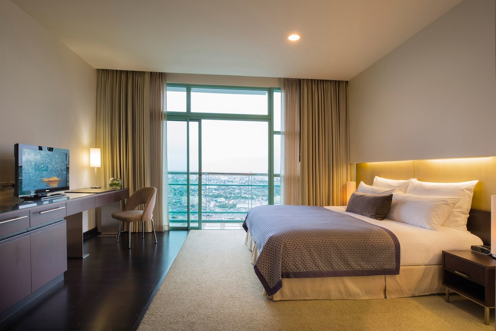 In the heart of Bangkok, the Chatrium Hotel Riverside Bangkok is close to the Wat Yan Nawa and the Si Phraya Pier. The hotel built in 2008 is known for its comfort and its staff. The primary amenities at this hotel are babysitting or childcare (surcharge), coffee shop or café, restaurant, snack bar, coffee & tea in lobby, bar & lounge, 24-hour front desk, elevator and free internet. Additional amenities include children's club, safety-deposit box, ironing facilities, mini-market on site, terrace, facilities for disabled guests, non-smoking rooms, designated smoking areas, sun terrace, tours & ticket assistance, bridal suite, currency exchange, ironing service, packed lunches, shoeshine, tour desk, trouser press and beauty shop. Chatrium Hotel Riverside Bangkok accepts American Express, Diners Club, JCB International, MasterCard and Visa for payment. Pets not allowed. Couples and groups of friends will enjoy a stay at Chatrium Hotel Riverside Bangkok.\r\nStanding on the banks of the majestic Chao Phraya River, the city's historic focal point, the 5-star Chatrium Hotel Riverside Bangkok offers a premium choice by blending spacious and luxurious contemporary accommodation with warm and friendly Thai hospitality, along with full facilities including infinity-edge swimming pool, fitness centre, business centre and more. .Whether for business, leisure, meetings or just simply pleasure, our ability to tailor our products and services to your needs will certainly create "A Remarkable Experience".\r\nThis hotel is within close proximity of the Siam Ocean World and the Benjakiti Park. The closest airports to Chatrium Hotel Riverside Bangkok are Don Mueang Intl (Bangkok) and Suvarnabhumi Intl (Bangkok).\r\nThe following credit cards are accepted at the hotel: American Express, VISA, Diners Club, JCB and MasterCard.\r\nPlease note early arrivals will be assessed 100 % of the daily room rate. There is an extra fee for late check out and based on availability.\r\nFree parking is possible onsite. The hotel provides 24-hour reception, concierge and room service.\r\nBusiness facilities available at the Chatrium Hotel Riverside Bangkok include business center, conference center and multiple large conference rooms. Swimming facilities available at this hotel include children's swimming pool and outdoor swimming pool. Wellness facilities include hair salon, massage - spa treatment room(s), fitness facilities, sauna and spa services on site.\r\nThe hotel has 396 air conditioned rooms for you to relax in. The main room amenities are in-room safe, cribs & infant beds (complimentary), air conditioning, soundproofed rooms, refrigerator and satellite TV service. Additional room amenities include access via exterior corridors, blackout drapes, balcony, balcony or patio, bathrobes, compact refrigerator, complimentary bottled water, complimentary toiletries, desk, phone, DVD player and flat-panel TV.\r\nThe hotel features an outdoor pool and a children's pool. The sun loungers and parasols on the sun terrace offer a great place to unwind. The hot tub is the perfect place to relax. The poolside bar serves a selection of refreshing drinks. There are a variety of leisure options to choose from including a gym, a spa, a sauna, a steam bath, a beauty salon, massage treatments and anti-ageing treatments.\r\nEating and drinking facilities include coffee shop or café, restaurant, snack bar, coffee & tea in lobby and bar & lounge. Shopping facilities include convenience store.\r\nPresented hotel star rating might differ depending on a supplier content source. Presented hotel accommodation type might differ depending on a supplier content source.