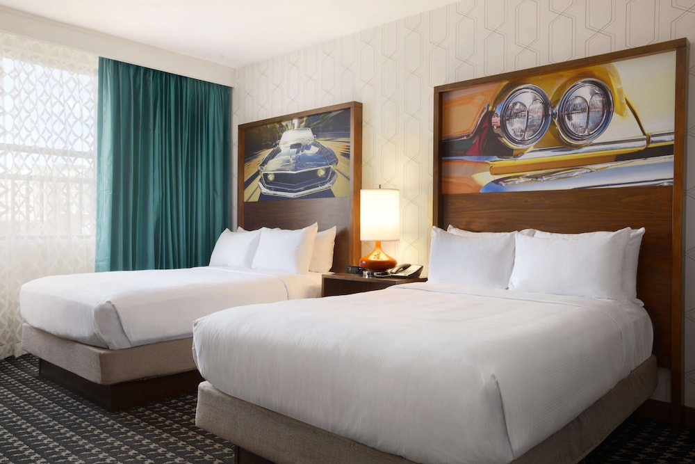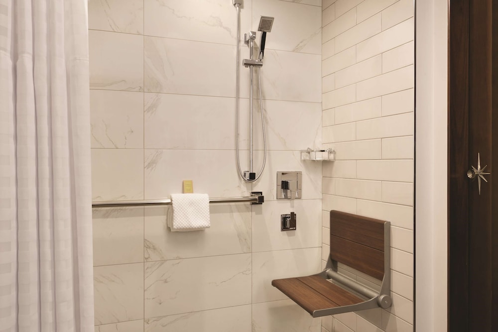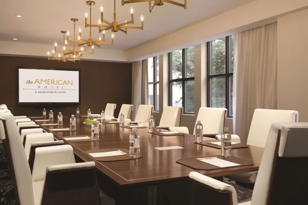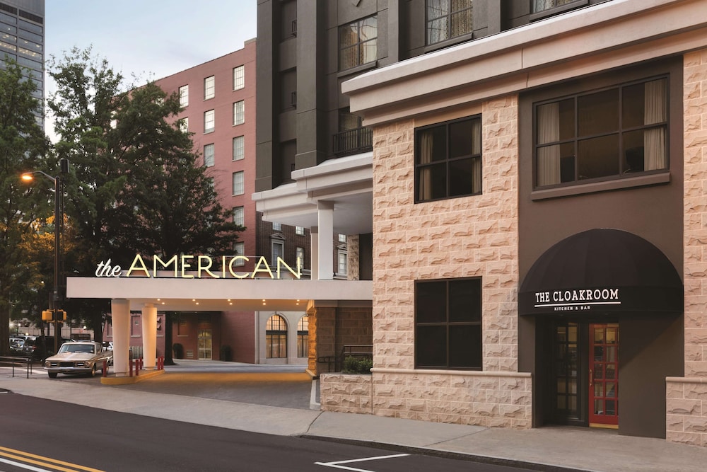 This Atlanta city center hotel offers a 24-hour fitness center cocktail lounge and rooms with a flat-screen television. The Tabernacle Concert Hall and Centennial Olympic Park are 500 feet away. Mercedes-Benz Stadium is 1.1 mi from the property while State Farm Arena is a 9 minutes' walk away. The American a DoubleTree by Hilton Atlanta Downtown’s guest rooms feature white linens and down comforters. Each room features a hairdryer ironing facilities and a desk. Access to an outdoor pool is provided to all guests at this The American a DoubleTree by Hilton Atlanta Downtown. Express check-in/check-out service and a business center are also available. The Cloakroom Kitchen and Bar a fine dining venue offers American cuisine for lunch and dinner. Hartsfield-Jackson Airport is a 8.9 mi from this accommodations. Guests will be 2 minutes' walk from Centennial Olympic Park. The Chick-fil-A College Football Hall of Fame is an 8 minutes' walk away.